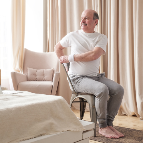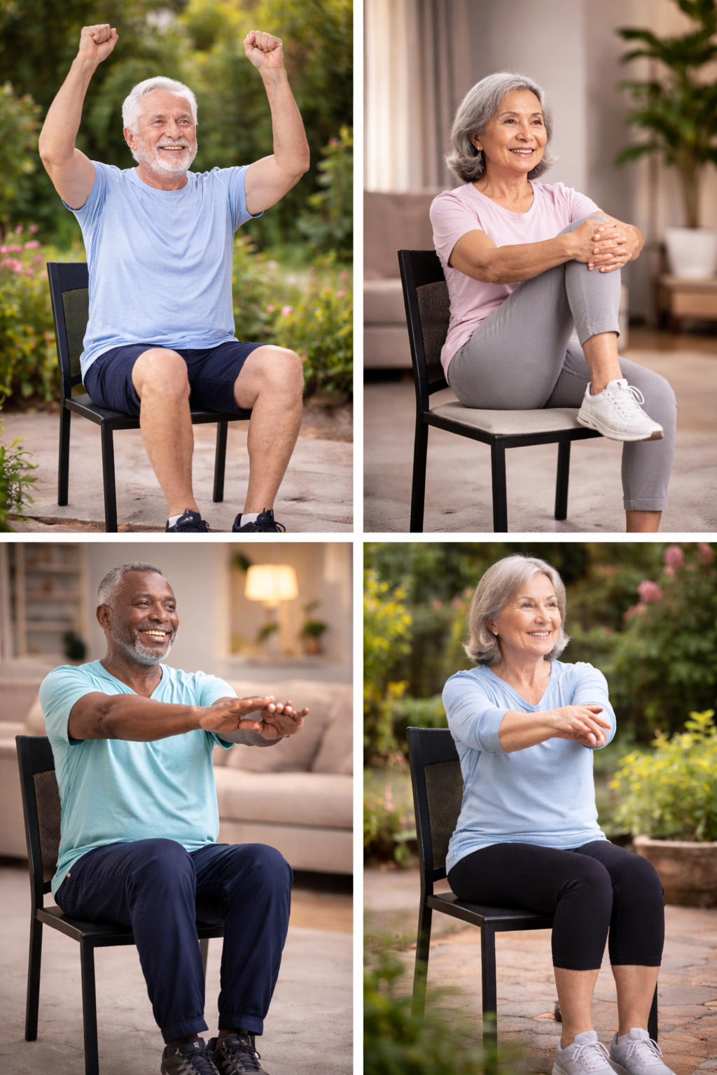 Trygga övningar som funkar för alla nivåer. Du tränar sittande och bygger upp styrka och rörlighet i ett lugnt tempo. Perfekt för både vardag och rehab.